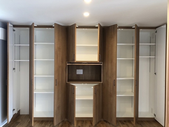 Materials : メラミン化粧板(木目調)、ポリ合板(木目調)